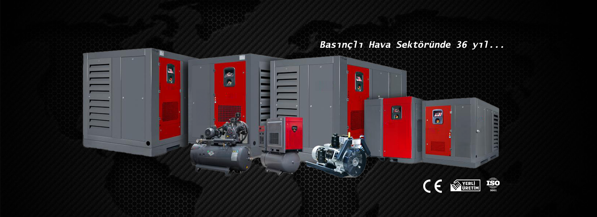 Öztaş Kompresör " Yüksek verimli, düşük enerji tüketimli 4 kw - 250 kw arası 8-10-13-16-20 bar İnvertörlü direk akuple vidalı kompresörler. Hava kurutucular, kimyasal hava kurutucuları, hava tankları, lazer kompresörleri ve tüm endüstriyel basınçlı hava ihtiyaçları için özel çözümler."